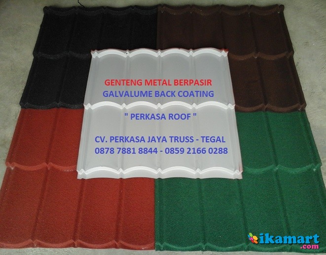 Distributor Genteng metal berpasir harga murah khusus Developer, Kontraktor,Aplikator, TB Bangunan di wilayah Tegal, Brebes, Pemalang, Pekalongan, Bumiayu dan Purwokerto