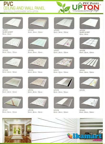 Plafon PVC upton adalah jenis plafon yang dibuat dari bahan PVC yang sangat ringan sehingga mudah dipasang, menghemat tenaga kerja dan dari segi keamanan pun dapat diandalkan. Bisa dipastikan bahan yang ringan lebih meminimalisir resiko cedera berbahaya. Mudah Pengaplikasian Masyarakat modern sekarang ini sangat menghargai waktu dan uang. Karenanya pemilihan plafon yang mudah pengaplikasiannya menjadi syarat mutlak yang harus di penuhi. Plafon PVC upton menjawab tantangan akan kebutuhan tersebut dengan meluncurkan produk-produk yang telah teruji sangat cepat dan mudah dalam pengaplikasiannya. Membantu anda mewujudkan gaya hidup serba modern dimana semua harus serba cepat, presisi, dan compact. Tidak Perlu Pengecatan Plafon PVC UPTON terbuat dari material bangunan yang non finishing sehingga anda tidak perlu melakukan pengecatan seperti yang biasa dilakukan jika memakai plafon lainnya. Tentu saja akan menghemat biaya, waktu dan tenaga. Plafon PVC UPTON juga sangat mudah dibersihkan. Perawatan yang mudah menjadikan anda tidak kehilangan banyak waktu dan tenaga. Keindahan rumah dan ruang anda pun tidak terganggu. Maintanence Free Bebas perawatan menjadikan Plafon PVC UPTON memenuhi konsep bahan bangunan modern serta sangat praktis dan ekonomis digunakan untuk jangka panjang. Desain Elegan Dan Stylish Model dan desain Plafon PVC UPTON begitu stylish dan elegan.