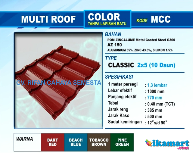 - MULTICOLOR : Genteng metal Zincalume warna