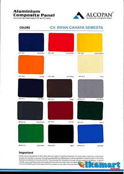 ALUMINIUM COMPOSITE PANEL yang tahan panas tahan cuaca, tahan korosi & tersedia beberapa ukuran tipe dan berapa varian. Dengan ALUMINIUM COMPOSITE PANEL mempunyai nilai tambahan sendiri karena berbagai macam warna.