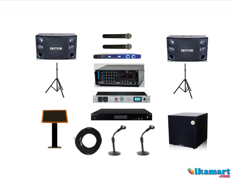 (2 Unit) Speaker Karaoke BMB CS 850 R (10)(1 Unit) Amplifier BMB DA 800 R(1 Unit) Subwoofer BMB SW 112 SE(12")(2 Unit) Microphone Wireless VL AUDIO MW 20(1 Set) Stand Tripod SIGMA 502(1 Unit) Player Karaoke AUDIOBANK AB 3000+HDD 2 TERA(1 Unit) LED Monitor Touch screen AUDIOBANK TC 190(19")(1 Unit) Power Squencer VL AUDIO PS 10(2 Unit) Stand Microphone(10 M) Kabel Speaker VL AUDIO CS 100(Made In Italy)