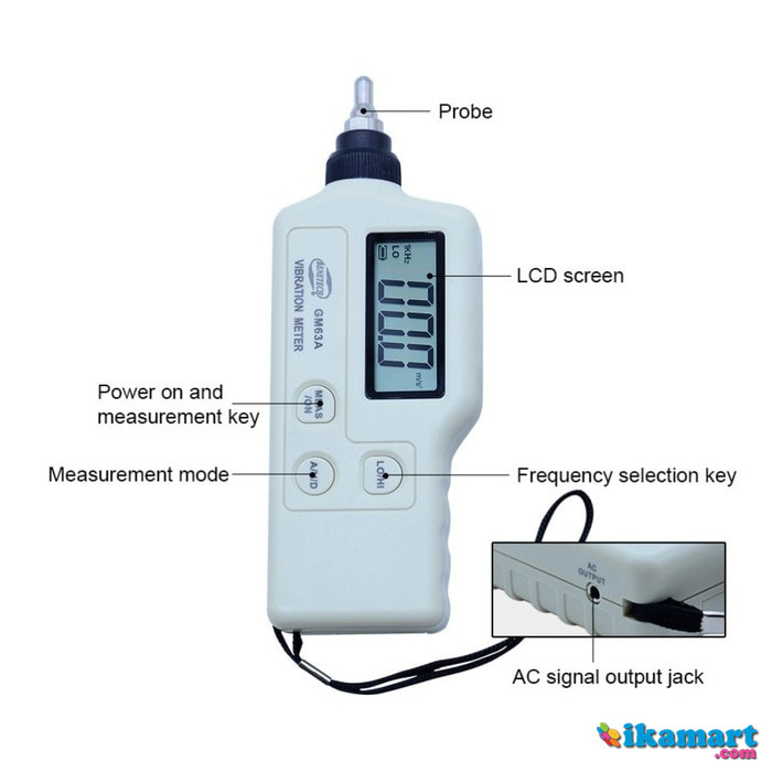 Benetech GM63A Professional Analysis Vibration Meter is widely used to monitor vibration state of mechanical equipment and diagnose fault. This vibration meter functions to measure acceleration, velocity and displacement. High precision and high stability advantages add its use value and cost performance. With an AC output socket, it is accessible to receive signal conveniently. Besides, designed with a strap on its side is portable to carry during use. It is energy-saving and environmentally friendly just needs one battery. Don’t miss this opportunity!