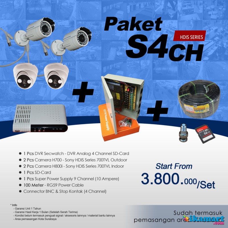 PAKET DVR Merek Secwatch, 4 Channel Harga Murah Bisa Pantau Online