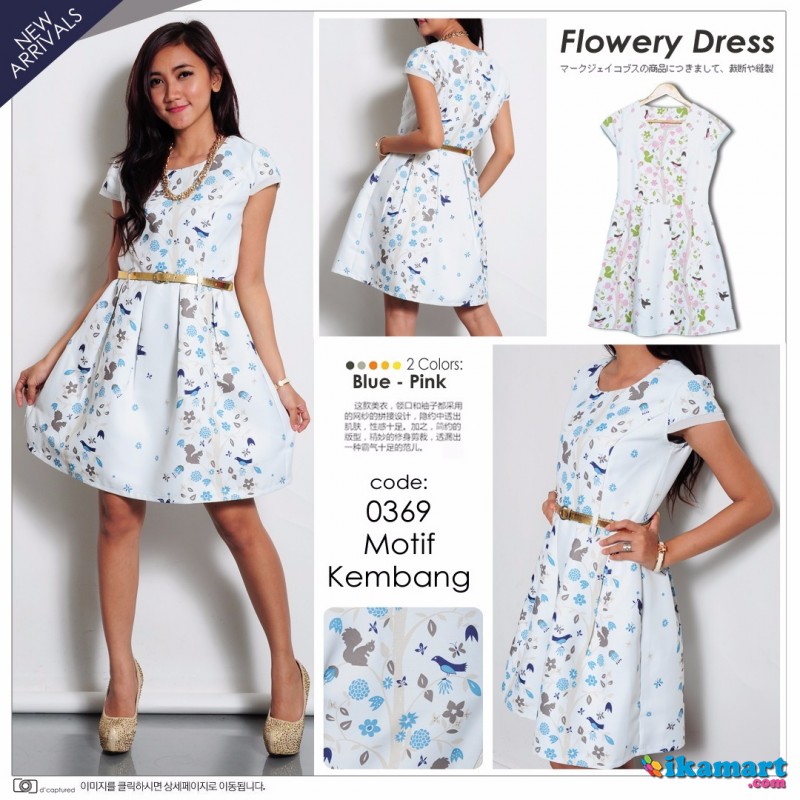 #0369 Blue Pink Birdie – Flowery Dress Rp 300.000,-