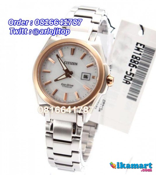 Fitur Dan Spesifikasi:Dial Color: White DialGender: Women's watchWater Resistant: 100 Meter 10Bar Case diameter: 33 (crown) x 29 x 14 mm (thickness)Face Height: 24 mmLug Width: 9 mmMax Length: 190 mm CircumferenceJapan Movement: E011 Eco-DriveEco-Drive (recharged by any light source, no need to change battery)Insufficient Charge Warning FunctionOvercharge Prevention FunctionFrom full charge to stopping :Approx. 8 mthsFrom insufficient charge warning to stopping: Approx 7 daysTitanium CaseTitanium Bracelet2 Fold With Push Button Release Screw Down Case backLuminous Hands and MarkersSapphire CrystalDisplay Date at 3 o'clock positionCrown at 3 o'clock positionWeight: 51gJaminan Kwalitas Bergaransi Resmi 1 tahun