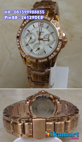 SPESIFIKASI: Quartz System (Javan Movement)Bahan jam terbuat dari Stainless Steel (anti karat & tdk luntur)Tiga jarum Chronograph aktip dan berfungsi(fungsi hari - tanggal dan am/pm)Warna jam Gold - Baground PutihDiHiasi butiran permata SwarovskiWater Resistant 5ATMDiameter Lingkaran 3.4 cmMesin berkwalitas terjamin Baik Kelengkapan: Box Exclusive dan kartu garansi100% Original dan bergaransi resmi 1 tahun.