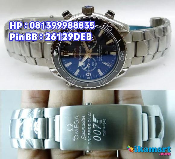 SPESIFIKASI: Quartz System All Stainless Steel Silver Anti Karat dan Anti KorosiWater Resistant , Diameter Lingkaran 4,1cmAda fungsi tanggal, Dua jarum chrono aktif & berfungsiBaground dasar warna Hitam Warna Kaca Bening Tampak Gradasi Kebiruan dari Samping MesinBerkwalitas Kwalitas Super Grade AAA+ 100% Terjamin Baik Super Quality Swiss MadeLengkap dgn Kotak Exclusive bawaan dari Jam Omega Harga : Rp 950,000