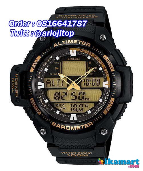 Resin Glass / Spherical Glass100-meter water resistanceCase / bezel material: Resin / AluminumStainless Steel BandOne-touch 3-fold BuckleElectro-luminescent backlightSelectable illumination duration, afterglowAltimeterMeasuring range: -700 to 10,000 m (-2,300 to 32,800 ft.) without reference altitudeMeasuring unit: 5 m (20 ft.)Others: Reference altitude setting*Changeover between meters (m) and feet (ft)BarometerDisplay range: 260 to 1,100 hPa (7.65 to 32.45 inHg)Display unit: 1 hPa (0.05 inHg)Atmospheric pressure differential pointer*Changeover between hPa and inHgThermometerDisplay range: -10 to 60 °C (14 to 140 °F)Display unit: 0.1 °C (0.2 °F)*Changeover between Celsius (°C) and Fahrenheit (°F)World time31 time zones (48 cities), city code display, daylight saving on/off1/100-second stopwatchMeasuring capacity: 23:59'59.99''Measuring modes: Elapsed time, split time, 1st-2nd place timesCountdown timerMeasuring unit: 1 secondCountdown range: 24 hoursCountdown start time setting range: 1 minute to 24 hours (1-hour increments and 1-minute increments)Daily alarms5 independent daily alarmsHourly time signalFull auto-calendar (to year 2099)12/24-hour formatButton operation tone on/offRegular timekeeping:Analog: 2 hands (hour, minute (hand moves every 20 seconds))Digital: Hour, minute, second, pm, month, date, dayAccuracy: ±30 seconds per monthApprox. battery life: 3 years on CR2016Size of case: 50.8 X 51.9 X 14.9 mmTotal weight: 104 gEL:White1 year warrantyLengkap Dgn Box Exclusive Khusus Jam Casio