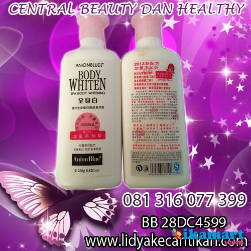 Anion Blue Whitening Body Lotion (250ml) adalah lotion pemutih kulit badan dengan kandungan SPF 30 yang dapat melindungi kulit dari sinar matahari.