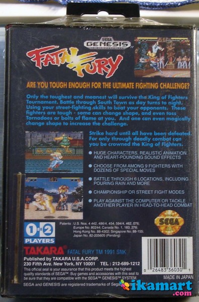 Fatal Fury SEGA Genesis / Mega Drive 16-Bits US NTSC Authentic