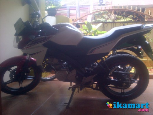 * Yamaha Vixion 2013 berwarna putih kombinasi merah.