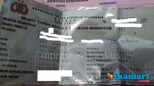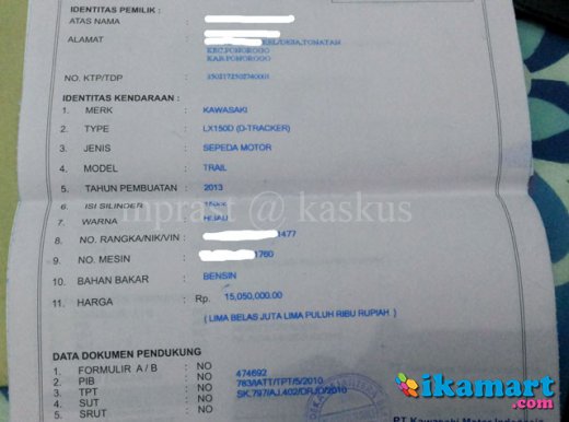 Dijual Kawasaki Dtracker tahun pembuatan 2013, pembelian dan registrasi 2014.