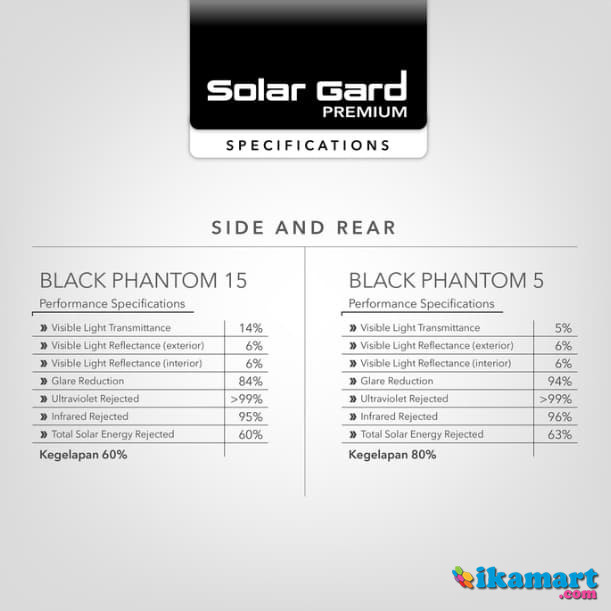 Solar Gard Premium Black Phantom 5 ( Kegelapan 80% )