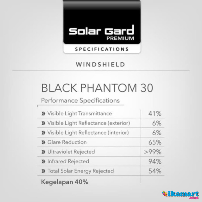 Solar Gard Premium Black Phantom 30 ( Kegelapan 40% )