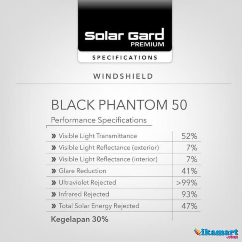 Kaca FIlm Black Phantom - PROMO SPECIAL DAPATKAN PENAWARAN HARGA TERBAIK DARI KAMI !!Solargard Premium series BLACK PHANTOM ORI berGaransi RESMIBlack Phantom memiliki warna hitam pekat yang absolute sesuai tren masa kini, serta di perkaya dengan infra red rejection up to 96% serta tersedia dalam kegelapan 20% - 40% - 60% - 80%Pilihan Kaca Film Depan :Solar Gard Premium Black Phantom 50 ( Kegelapan 20% )