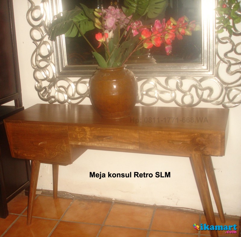 Kali ini kami memperkenalkan Meja konsul Retro laci 3 terbuat dari kayu lama, Warna natural sehingga jelas terlihat urat kayu jati nya,