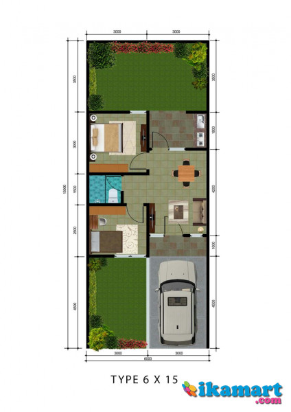 - Tipe 41/090 (2 Kamar Tidur + 1 Kamar Mandi)